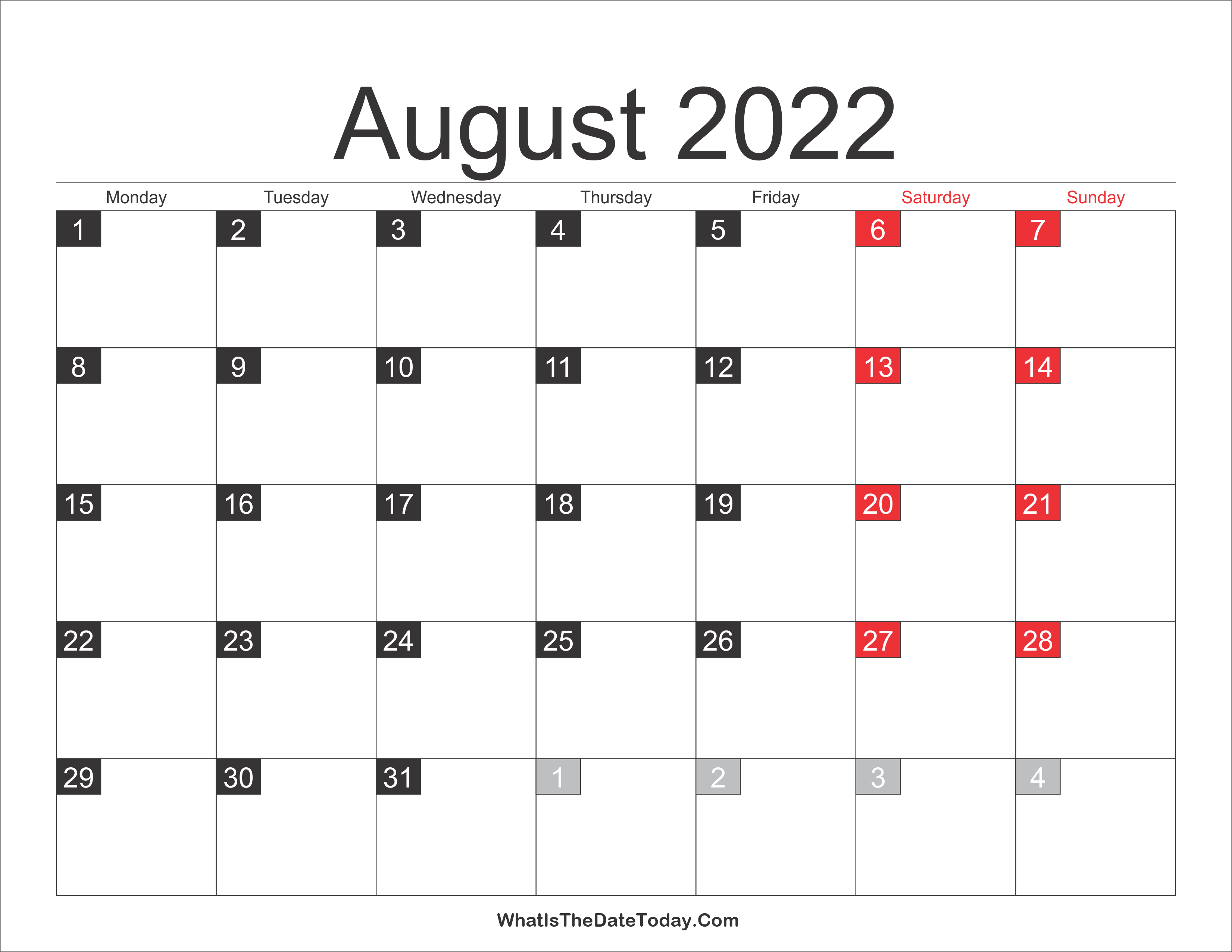 Looking for other august 2022 calendar in a different style or layout? We have a large variety of calendar templates for Word, Excel & PDF to download and print.