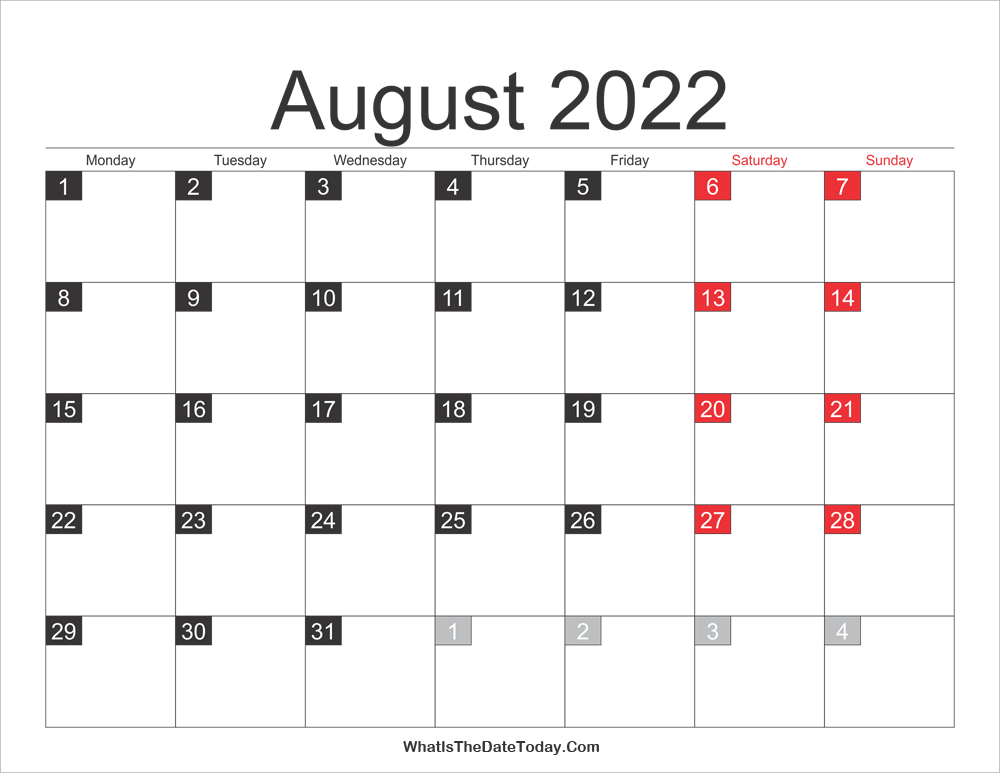 2022 August Calendar Printable is free monthly calendar 2022 which can easy to download and print. This calendar available in PNG or PDF format with landscape layout.