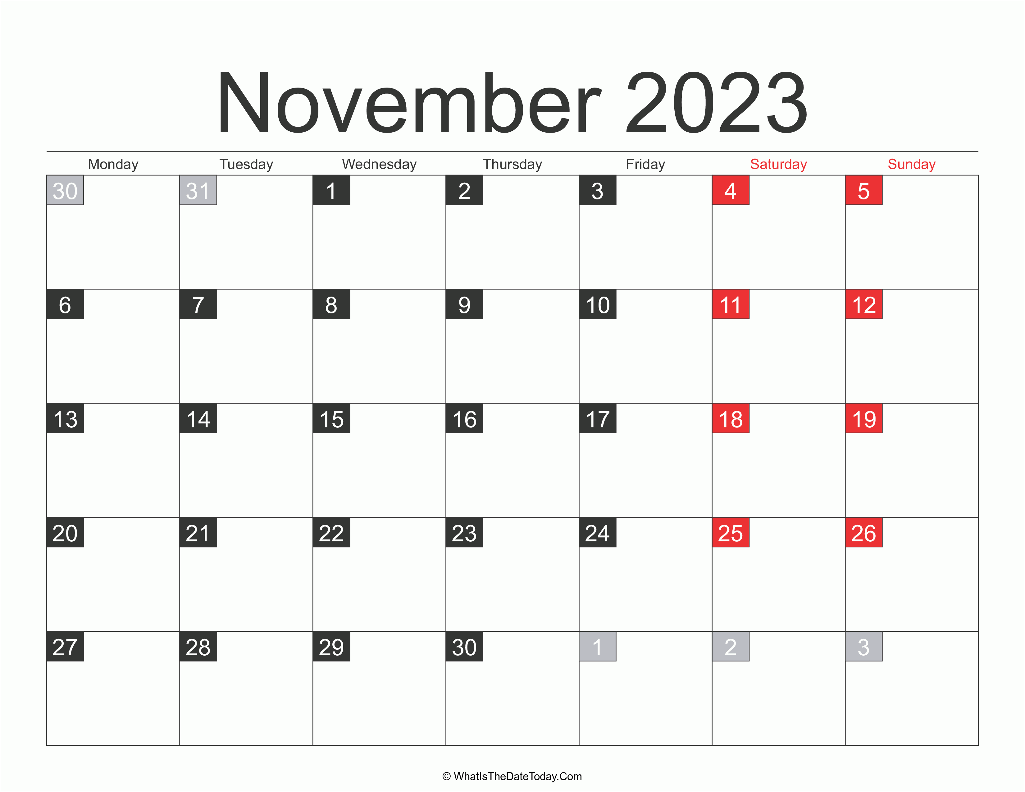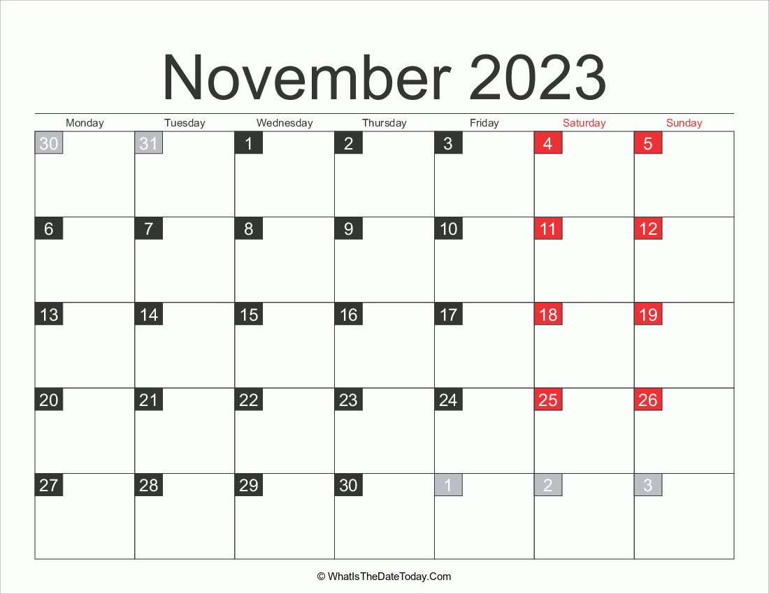 Looking for other november 2023 calendar in a different style or layout? We have a large variety of calendar templates for Word, Excel & PDF to download and print.