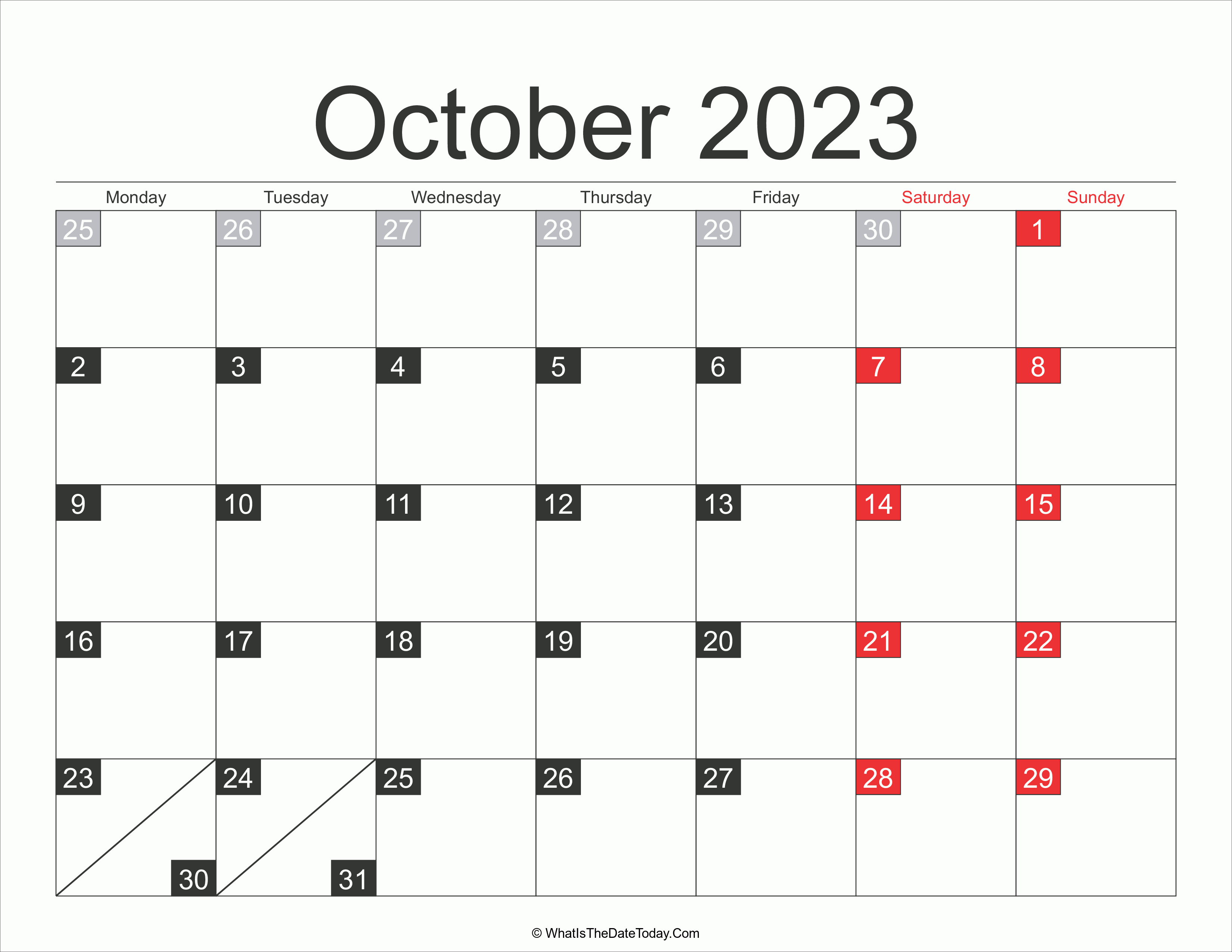 Looking for other october 2023 calendar in a different style or layout? We have a large variety of calendar templates for Word, Excel & PDF to download and print.