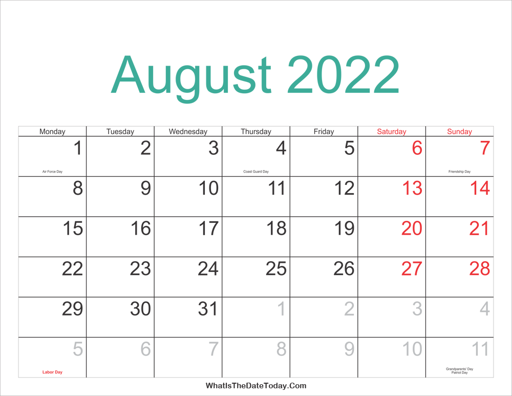 August 2022 Calendar Printable with Holidays is an other monthly calendar for 2022. This calendar include US Federal Holidays and national holidays 2022.