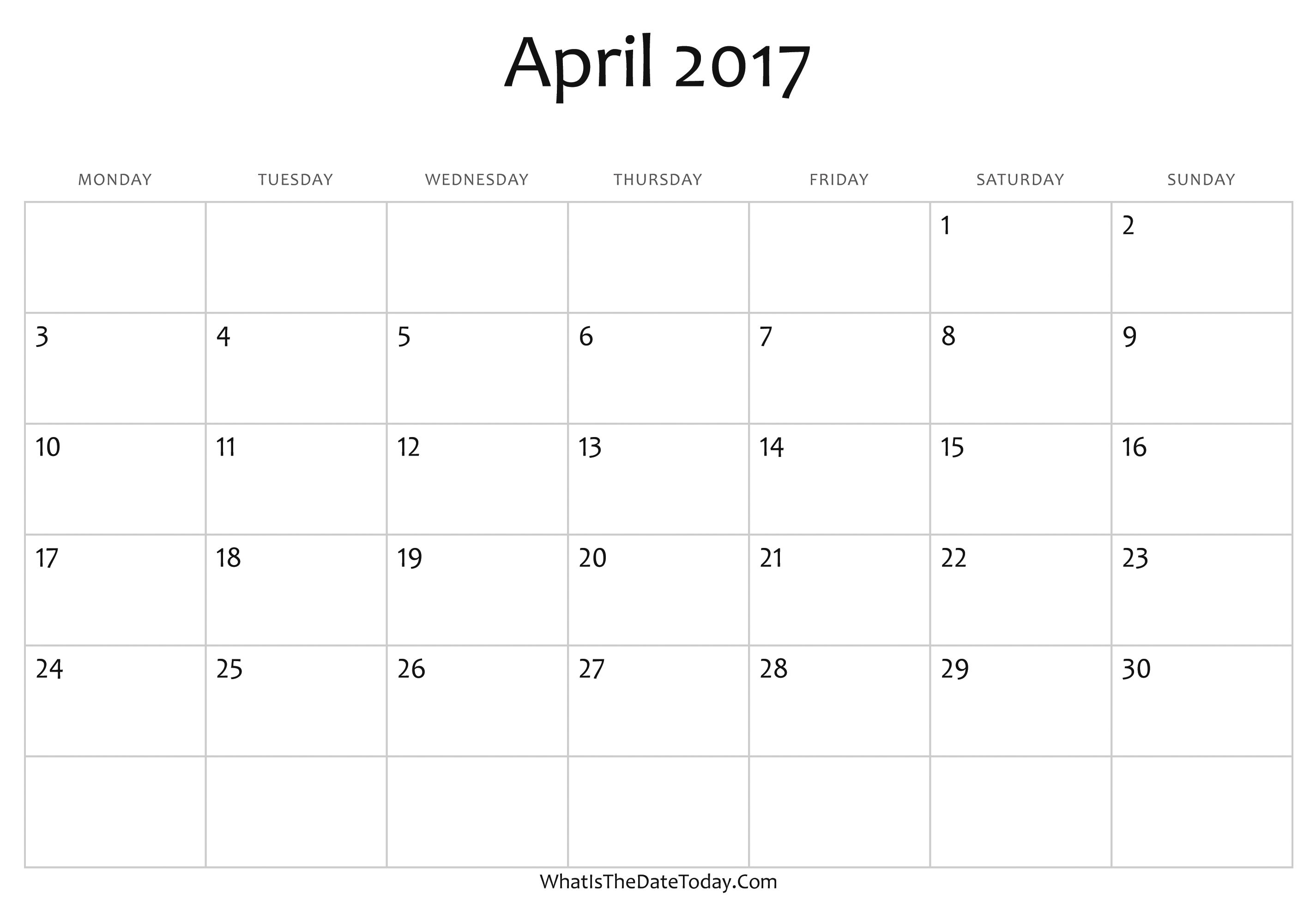 Blank April Calendar 2017