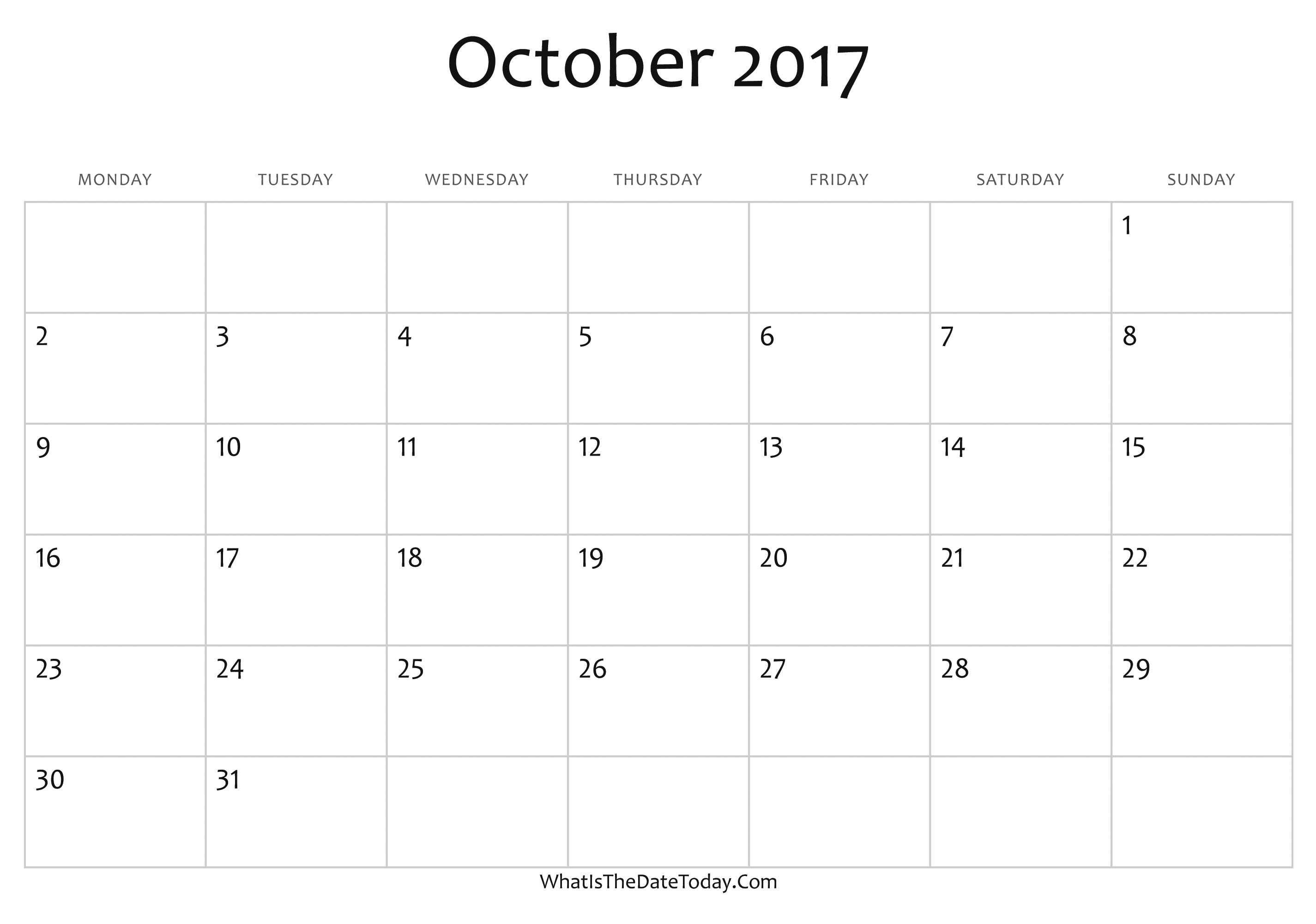 Blank October Calendar 2017 Editable is a monthly calendar which available in Word (Docx) format. With this calendar you can easy to edit and add any events, important notes to it. Make a custom october calendar never easy than this. Do it now!