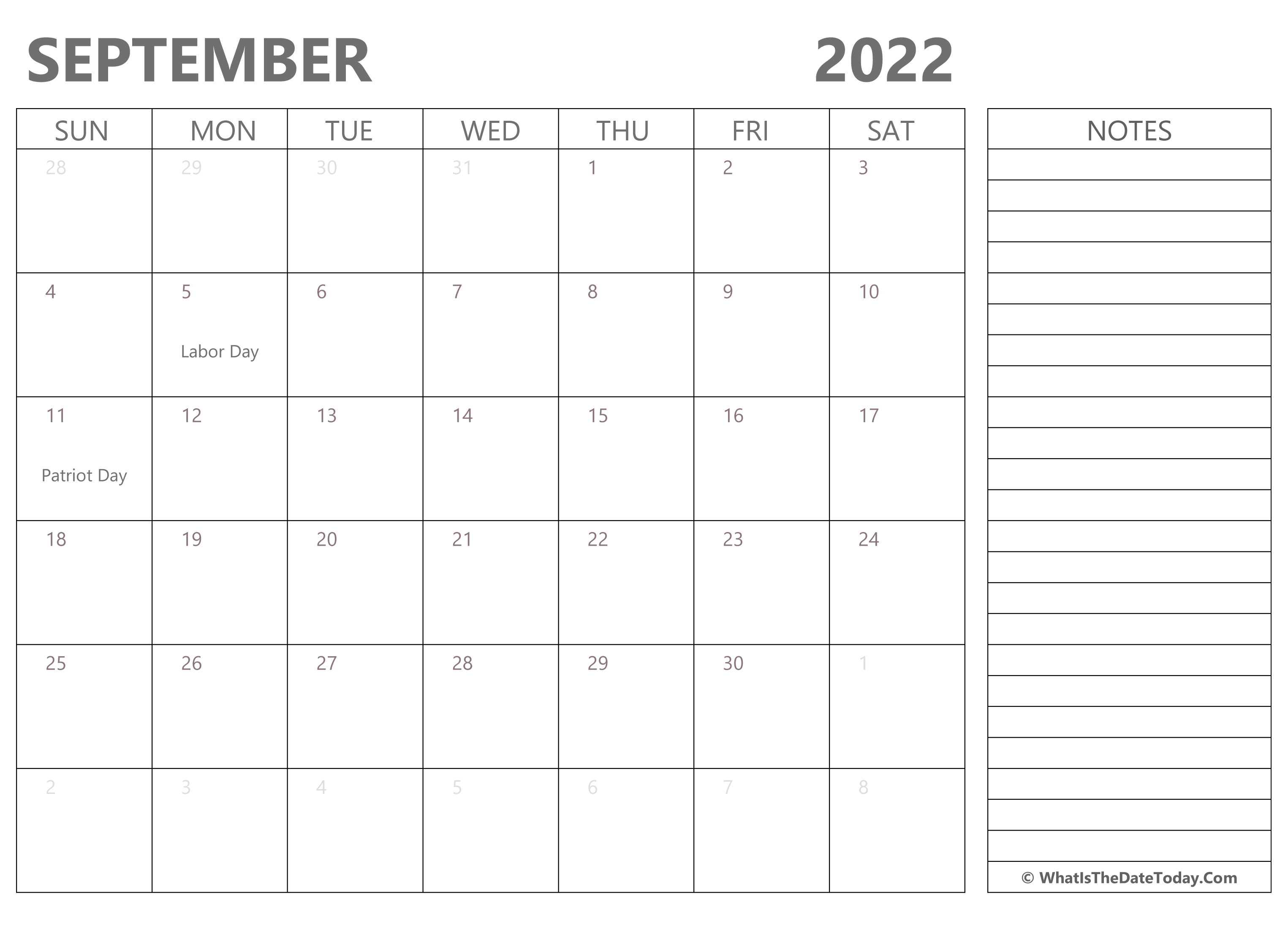 Editable September 2022 Calendar with Holidays and Notes is another editable monthly calendar for 2022 which available in Word and PDF.
