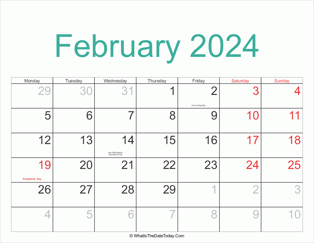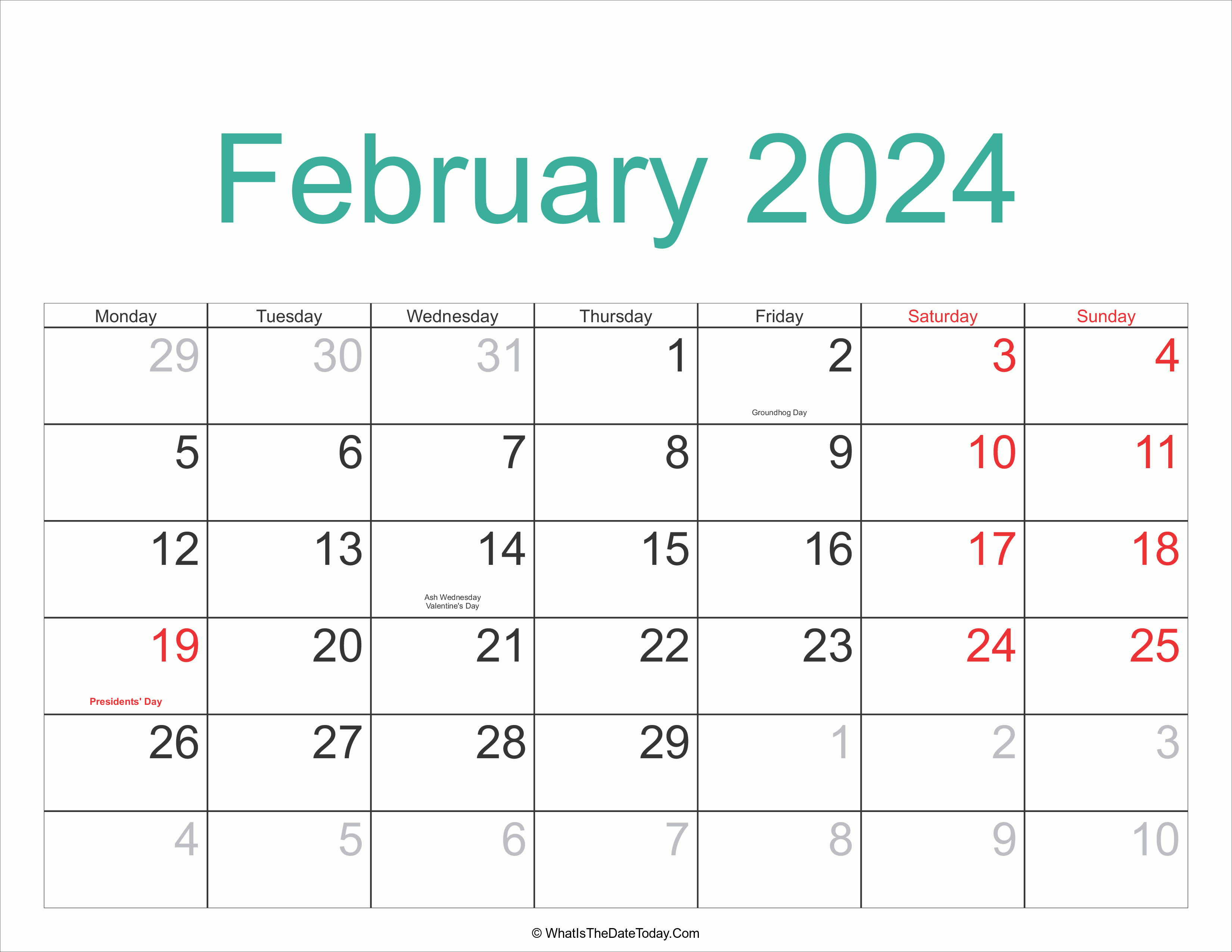 February 2024 Calendar Printable with Holidays is an other monthly calendar for 2024. This calendar include US Federal Holidays and national holidays 2024.