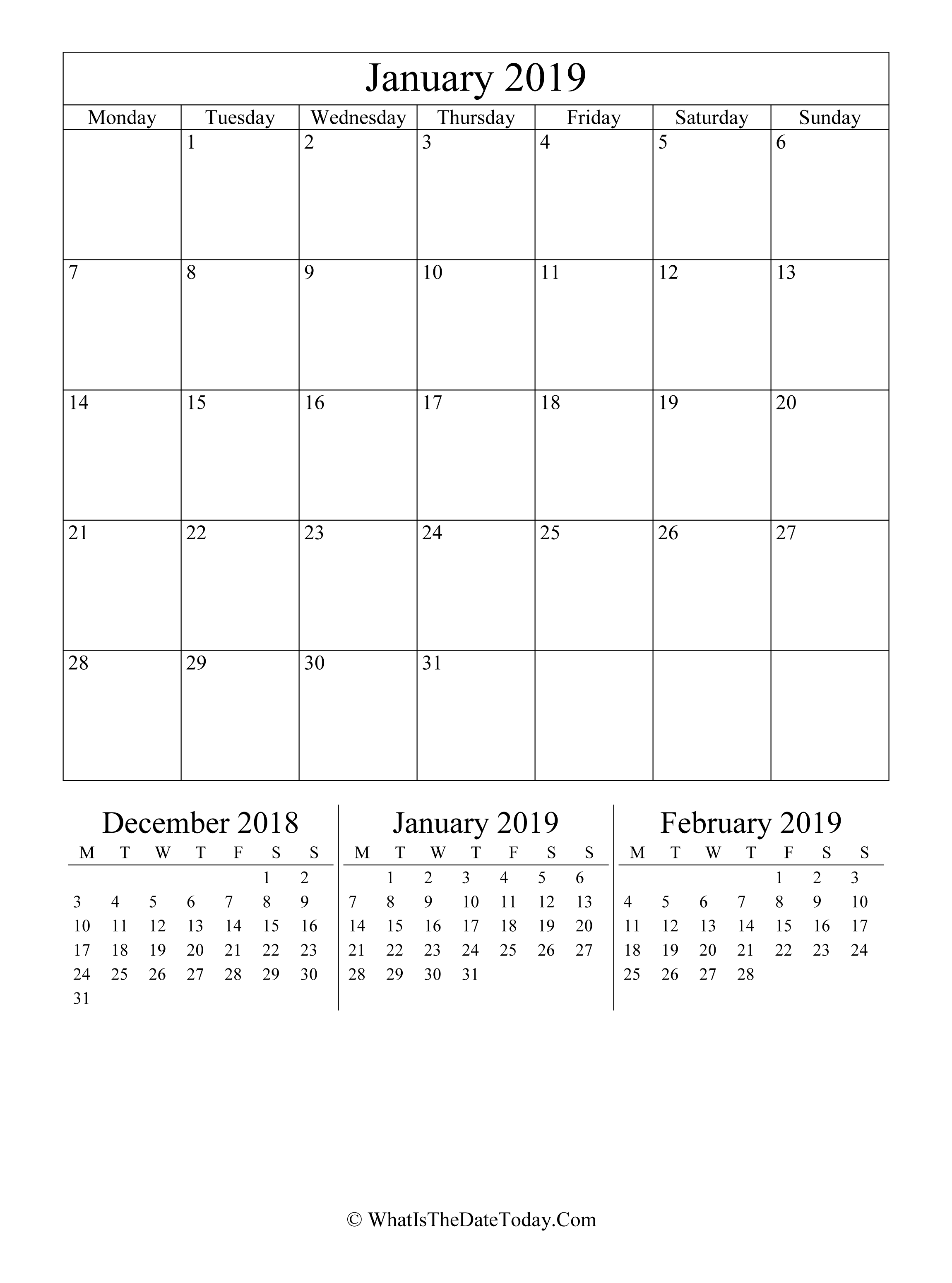 printable calendar january 2019.