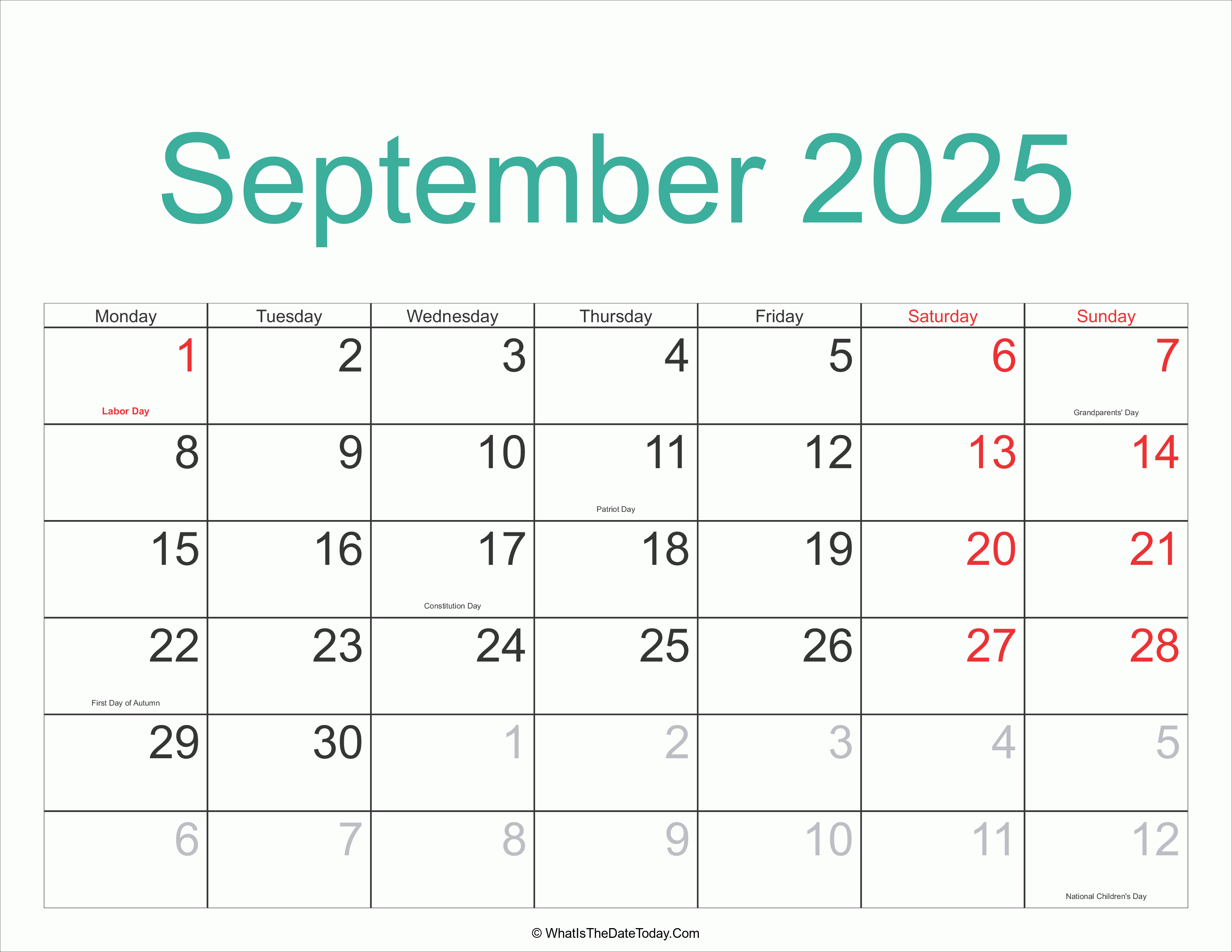 September 2025 Calendar Printable with Holidays is an other monthly calendar for 2025. This calendar include US Federal Holidays and national holidays 2025.